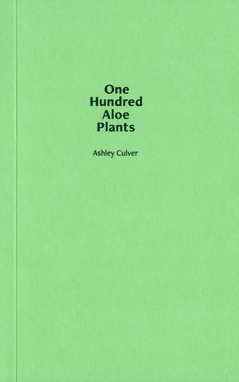 One Hundred Aloe Plants est le livre qui vient conclure le travail d’Ashley Culver en tant qu’Artiste en résidence à la bibliothèque, à la Albert Campbell branch of Toronto Public Library. Il fonctionne comme une archive des réponses écrites des usagers de la bibliothèque décrivant l’endroit de leur domicile où la plante d’aloe vera vivra, ainsi que comme une réimpression de l’affiche d’Alicia Nauta.